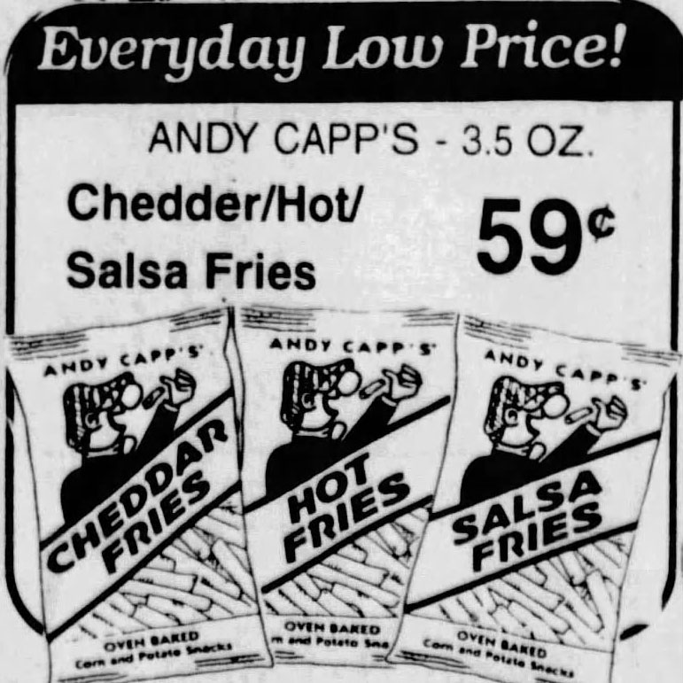 If I had druthers for one specific snack, my favorite would be Andy Capp’s Salsa Fries. But as they don’t exist anymore, I will give a pass to Andy Capp’s Hot Fries and the many other kinds of chips and pretzels. But they are not a replacement for Salsa Fries.